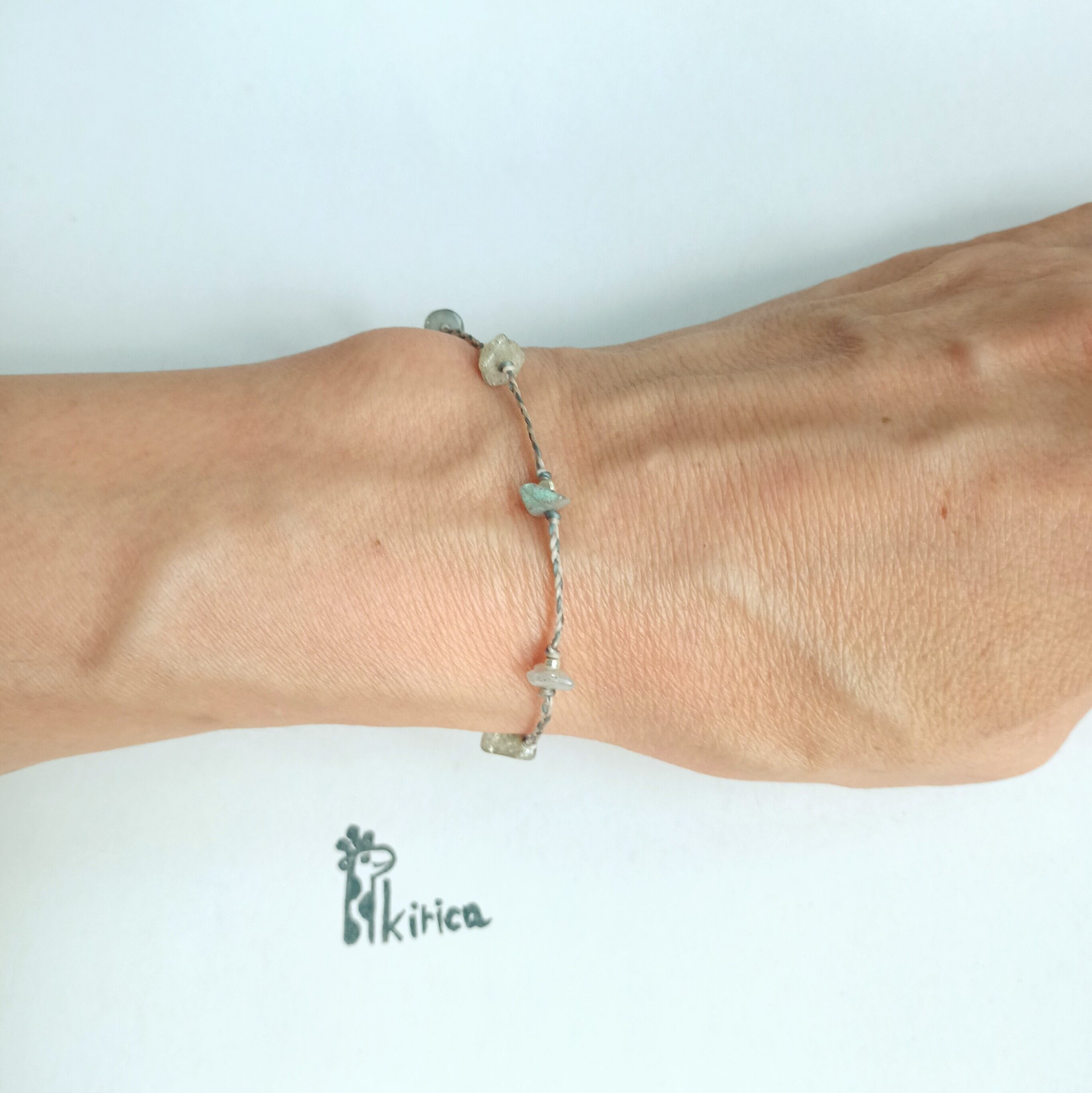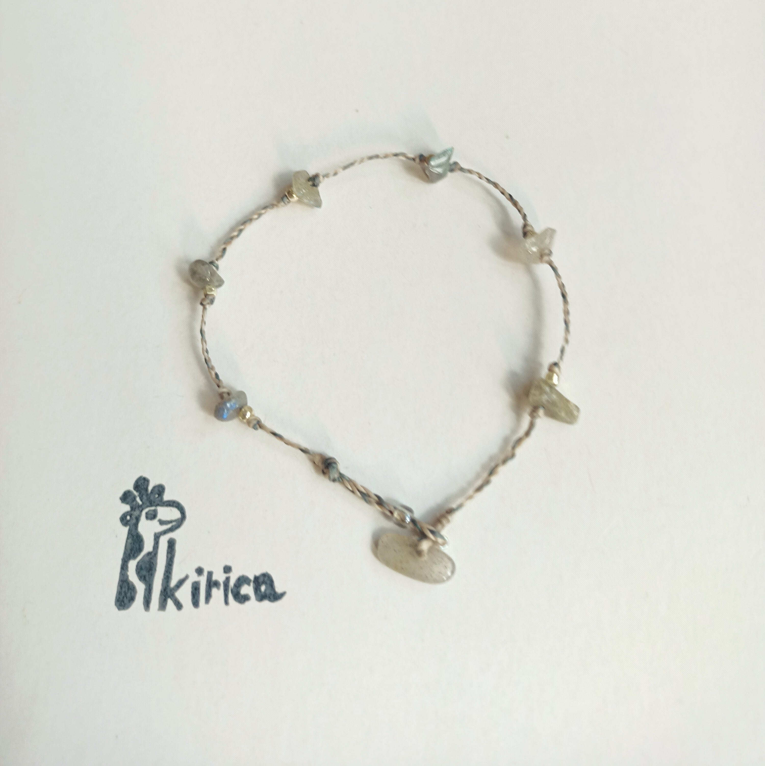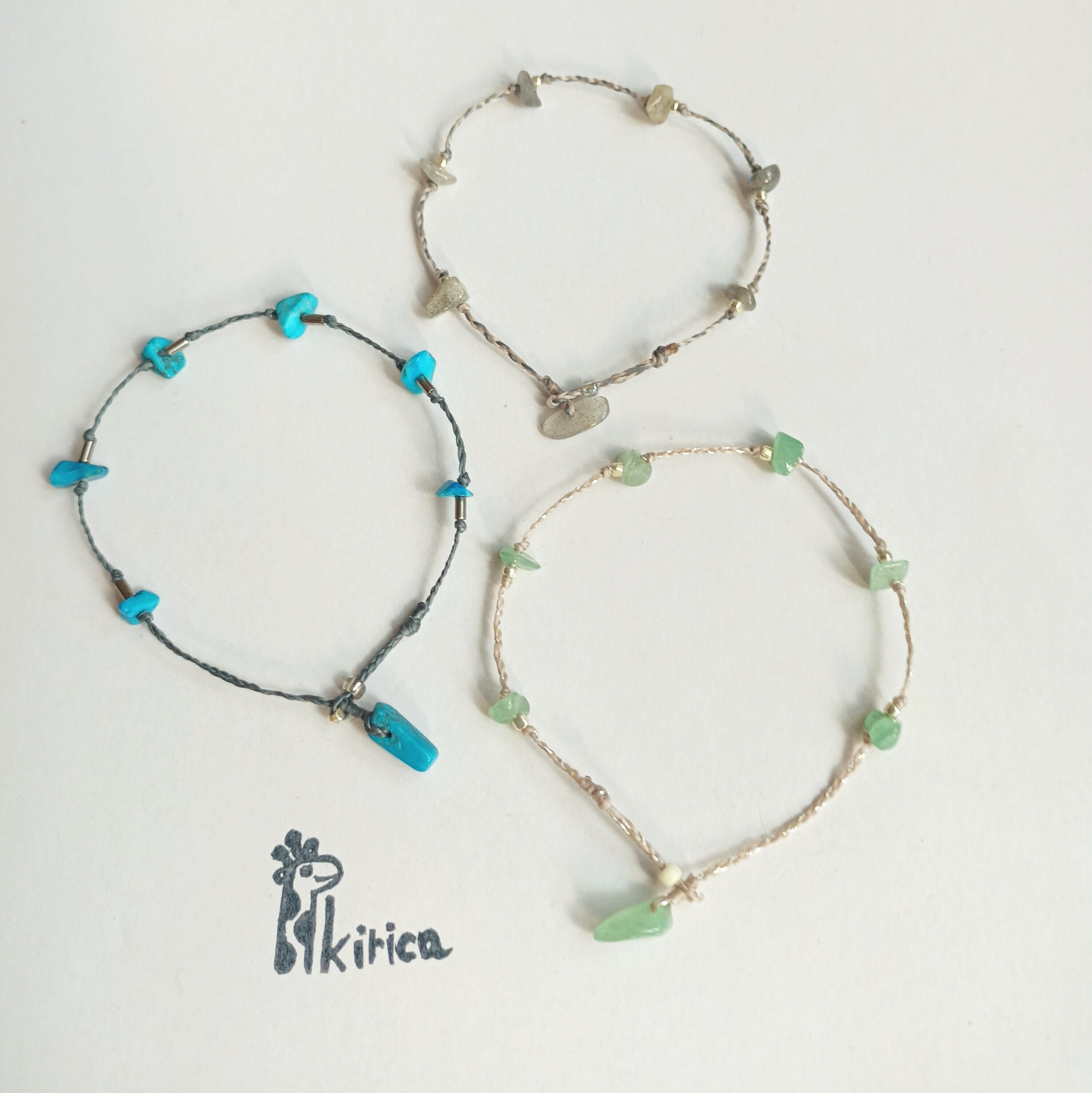 ランダムな天然石の細石を繋いだブレスレットは
