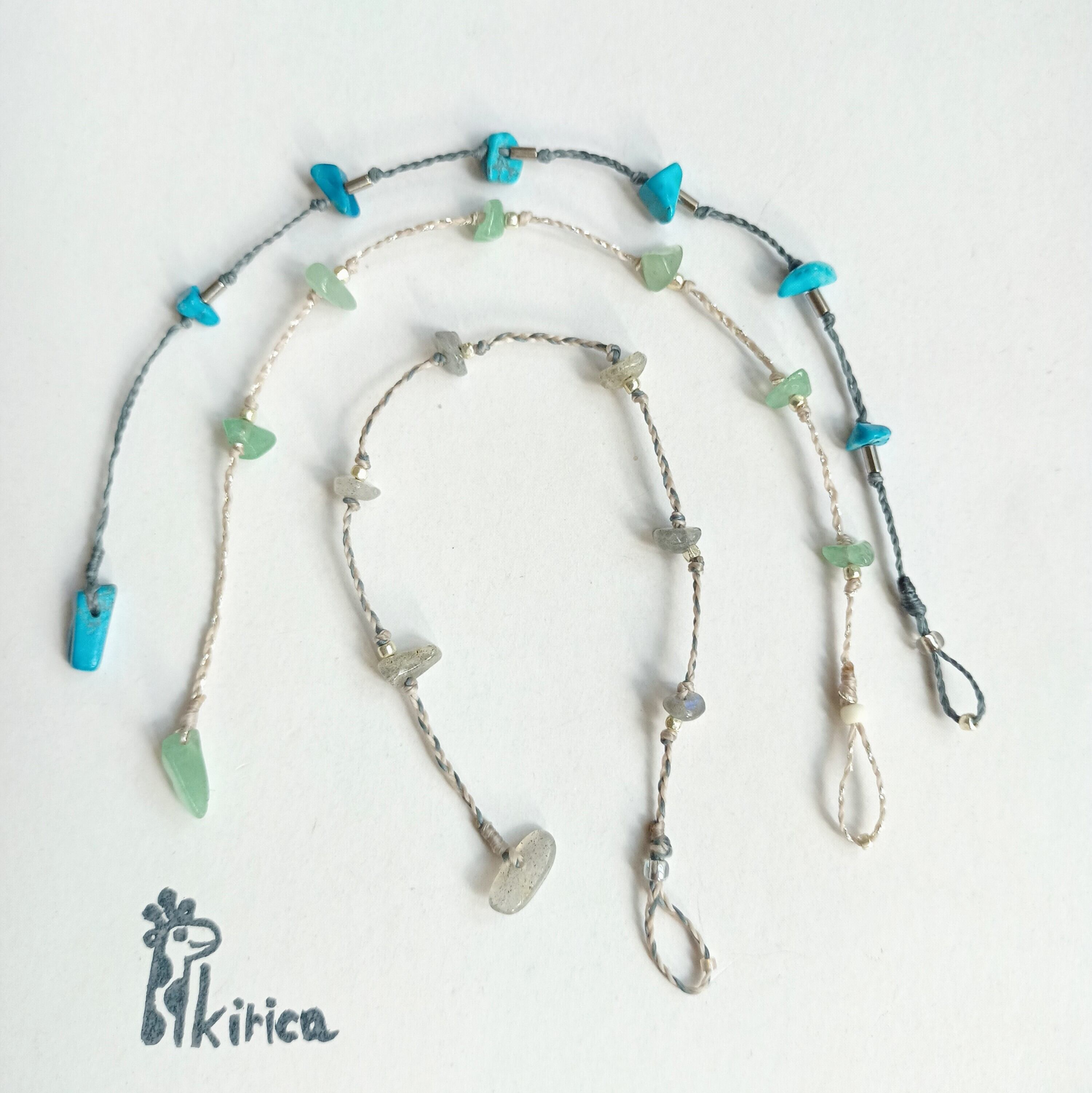 ブルーハオライト、グリーンアベンチュリン、グレーのラブラドライトがあります。